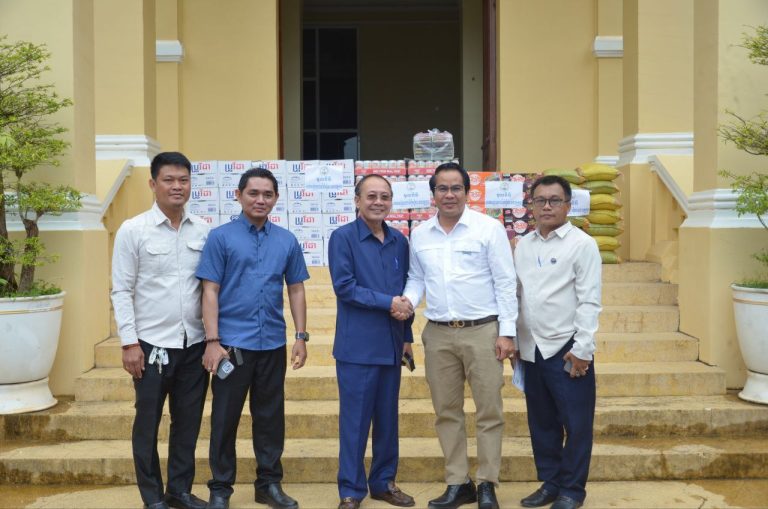 ខេត្តក្រចេះ ៖ នាព្រឹកថ្ងៃចន្ទ ទី៥ ខែមករា ឆ្នាំ២០២៦ ឯកឧត្តម សុខ ចាន់ភក្តី រដ្ឋលេខាធិការក្រសួងព័ត៌មាន និងជាប្រធានសមាគមសម្ព័ន្ធយុវជនដើម្បីសន្តិភាព បានដឹកនាំ សហការីក្រុមការងារ និងលោក ហ៊ួត ប៉ុញ្ញា ប្រធានសមាគមសម្ព័ន្ធយុវជនដើម្បីសន្តិភាព សាខាខេត្តក្រចេះ បាននាំយកមូលនិធិរបស់សមាគមសម្ព័ន្ធយុវជនដើម្បីសន្តិភាព (សស.យស.) ដែលមានដូចជា : ទឹកសុទ្ធប្រូវីដា ចំនួន ២០កេស មីជាតិ ២០កេស ទឹកផ្លែឈើ ២០កេស អង្ករ ២០ បេតូច សារ៉ុង ២០ នំបុ័ង២កេស និងថវិការសរុប ៥០ ម៉ឺនរៀល ទៅប្រគល់ជូនរដ្ឋបាលខេត្តក្រចេះ ក្រោមអធិបតីភាពរបស់ ឯកឧត្តម វ៉ា ថន អភិបាលនៃគណអភិបាលខេត្តក្រចេះ នៅក្នុងបរិវេណសាលាខេត្តក្រចេះ ទីរួមខេត្តក្រចេះ ៕