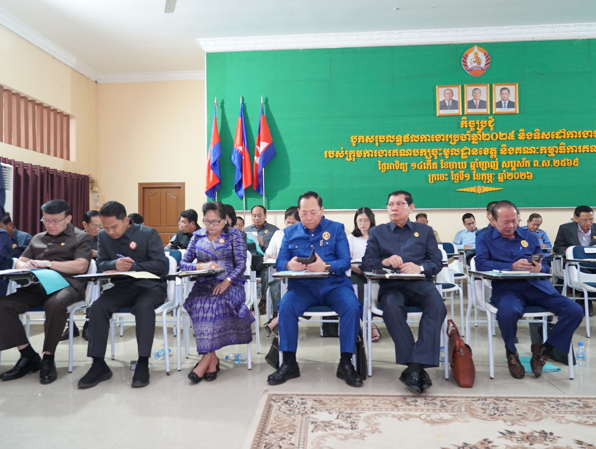 ឯកឧត្តម នេត្រ ភក្ត្រា សមាជិកគណៈកម្មាធិការកណ្តាលគណបក្សប្រជាជនកម្ពុជា និងជាប្រធានក្រុមការងារគណបក្សចុះមូលដ្ឋានខេត្តក្រចេះ អញ្ជើញជាអធិបតីកិច្ចប្រជុំបូកសរុបលទ្ធផលការងារគណបក្សប្រចាំឆ្នាំ២០២៥ និងលើកទិសដៅការងារបន្ត របស់ក្រុមការងារគណបក្សចុះមូលដ្ឋានខេត្តក្រចេះ នាព្រឹកថ្ងៃទី០១ ខែកុម្ភៈ ឆ្នាំ២០២៦។