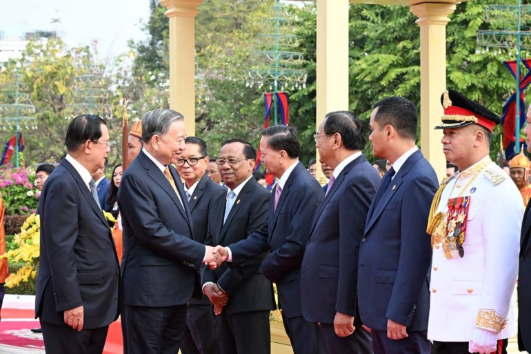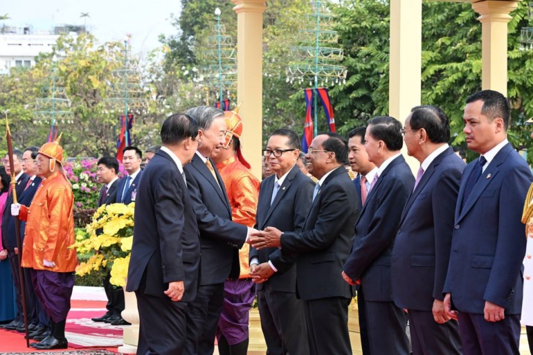 នៅព្រះបរមរាជវាំង នាព្រឹកថ្ងៃសុក្រ ៤រោច ខែមាឃ ឆ្នាំម្សាញ់ សប្តស័ក ពុទ្ធសករាជ ២៥៦៩ ត្រូវនឹងថ្ងៃទី៦ ខែកុម្ភៈ ឆ្នាំ២០២៦នេះ សម្ដេចអគ្គមហាសេនាបតីតេជោ ហ៊ុន សែន ប្រធានព្រឹទ្ធសភានៃព្រះរាជាណាចក្រកម្ពុជា បានអញ្ជើញជាព្រះរាជតំណាងដ៏ខ្ពង់ខ្ពស់បំផុត របស់ព្រះករុណាព្រះបាទសម្ដេចព្រះបរមនាថ នរោត្តម សីហមុនី ព្រះមហាក្សត្រនៃព្រះរាជាណាចក្រកម្ពុជា ទទួលបដិសណ្ឋារកិច្ចស្វាគមន៍ផ្លូវរដ្ឋជូន ឯកឧត្តម តូ ឡឹម អគ្គលេខាធិការបក្សកុម្មុយនីស្តវៀតណាម ជាមួយនឹងជំនួបសាវនាកាផងដែរ ក្នុងឱកាសដែល ឯកឧត្តម អញ្ជើញបំពេញទស្សនកិច្ចផ្លូវរដ្ឋនៅកម្ពុជា។