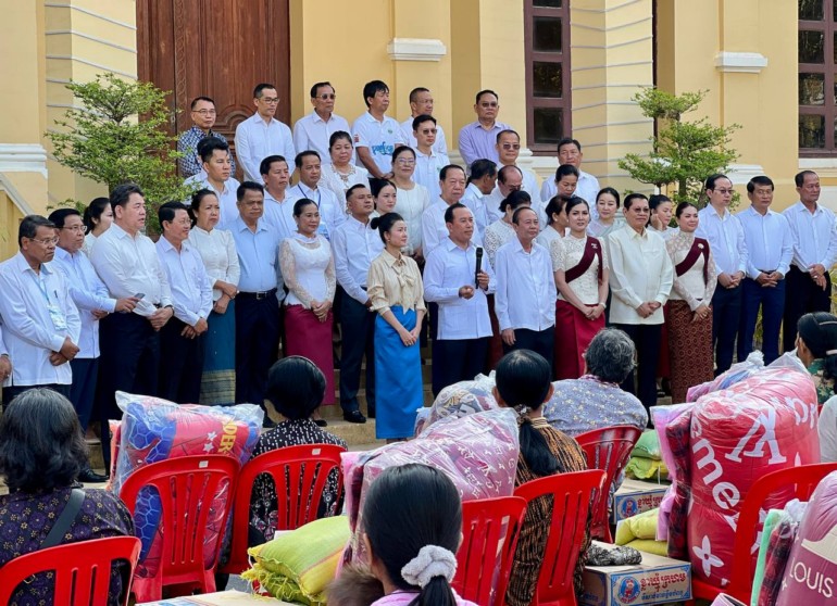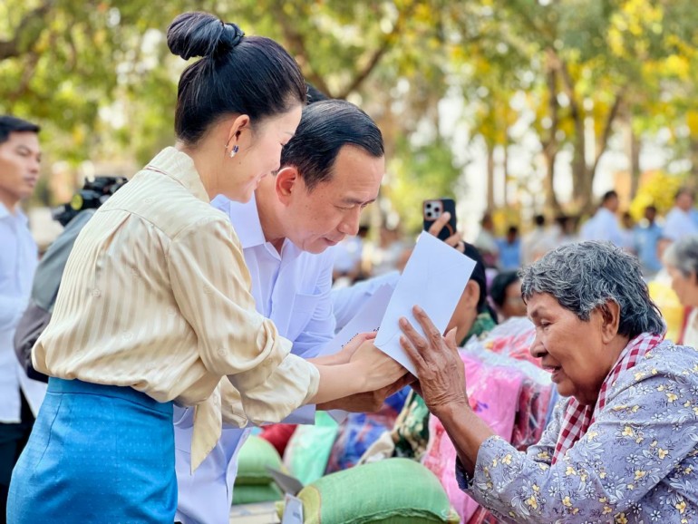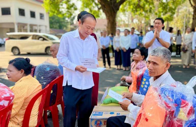 ខេត្តក្រចេះ ៖ នៅព្រឹកថ្ងៃទី២៨ ខែមីនានេះ ឯកឧត្តម ហួត ហាក់ រដ្ឋមន្ដ្រីក្រសួងទេសចរណ៍ និងឯកឧត្តម វ៉ា ថន អភិបាលខេត្តក្រចេះ បានជួបសំណេះសំណាល និងនាំយកអំណោយដ៏ថ្លៃថ្លារបស់សម្ដេចមហាបវរធិបតី ហ៊ុន ម៉ាណែត នាយករដ្ឋមន្ដ្រីនៃកម្ពុជា និងលោកជំទាវបណ្ឌិត ពេជ ចន្ទមុនី ហ៊ុន ម៉ាណែត ប្រគល់ជូនចាស់ជរា និងគ្រួសារជួបការលំបាកចំនួន ៥០គ្រួសារ ក្នុងបរិវេណរដ្ឋបាលខេត្ត។