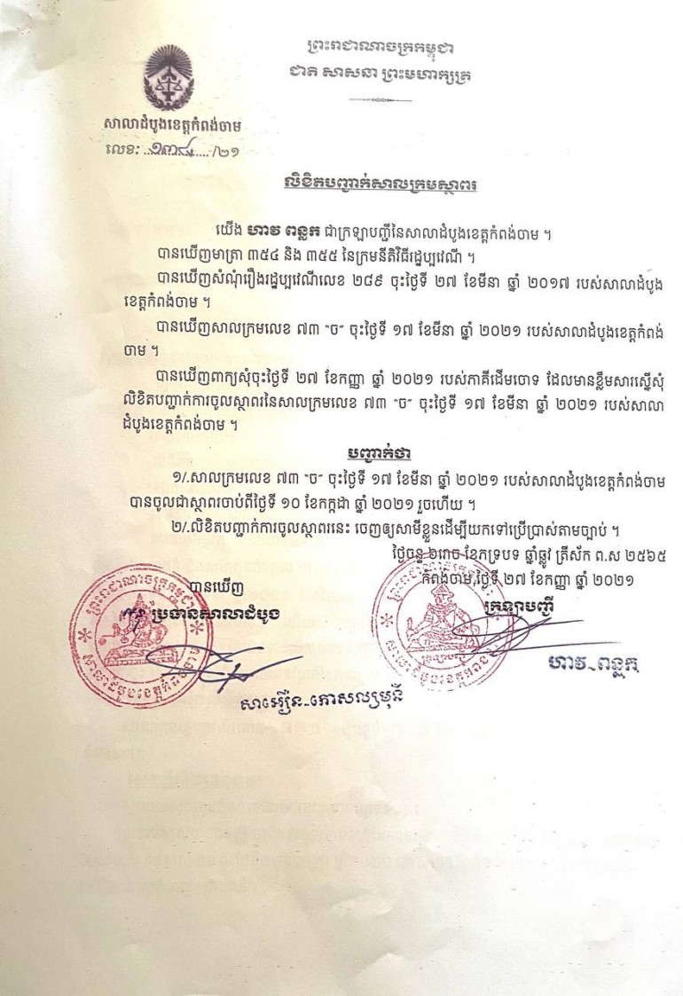 សូមបញ្ជាក់ថា៖អង្គភាពសារព័ត៌មានយើងខ្ញុំដើម្បីផ្សព្វផ្សាយទៅមានភាព សុក្រិត យុត្តិធម៌នោះក្រុមការងាបានទំនាក់ទំនងទៅលោកមេភូមិដើម្បីសុំកាបំភ្លឺតែលោក បានឆ្លើយថា(ជាប់ប្រជុំ)ចំណែកលោកមេឃុំ តេចូលតែមិនមានអ្នកទទួល។